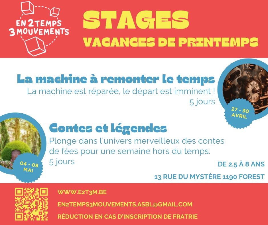 Stage pour les enfants chez 2 temps 3 mouvements, congé de Printemps 2026