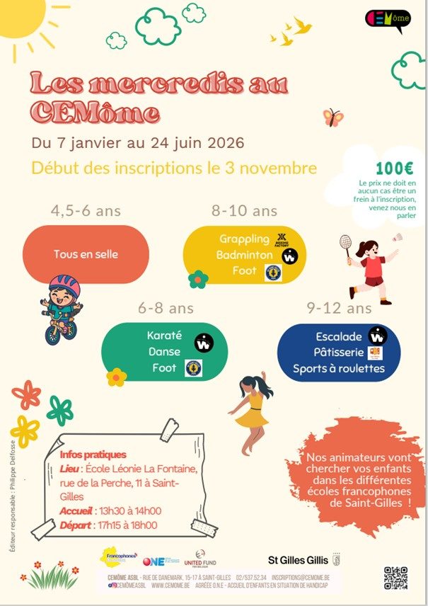 Les activités du mercredi au CEMôme reprennent dès le 7 janvier 2026 à Saint-Gilles