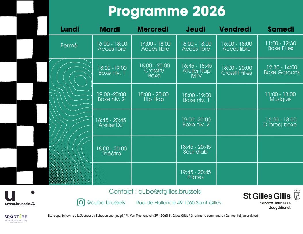 Le CuBe est un centre participatif d’expression artistique, culturelle, sportive et citoyenne situé dans le quartier Porte de Hal (Rue de Hollande 49).